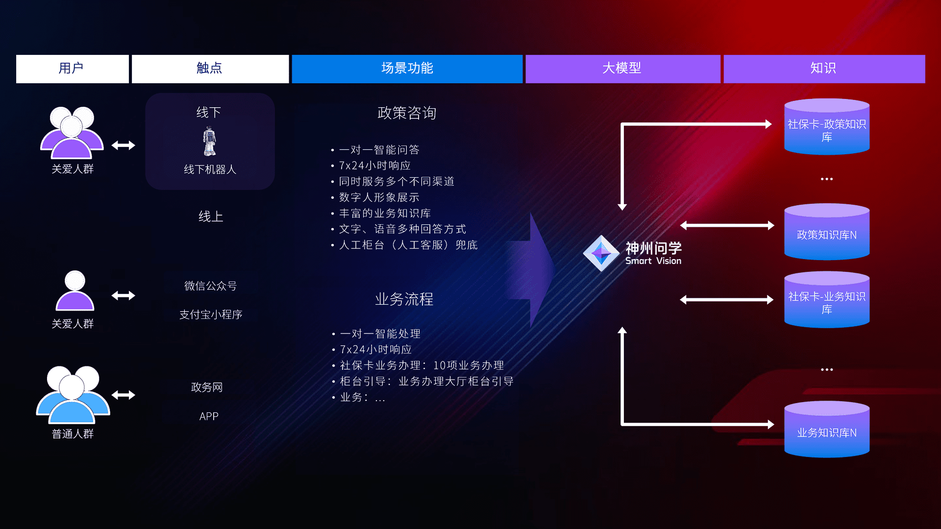 在服务大厅部署客服机器人,,,在线上应用和小程序配置客服数字人,,,,724小时为群众解答常规问题,,,客服机器人无法处理的,,,,转现场人工处理。。